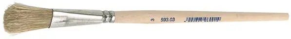 Provedení: Ploché provedení, čisté, světlé čínské štětiny v objímce z bílého plechu, extra plné. S nelakovanou dřevěnou násadou.
