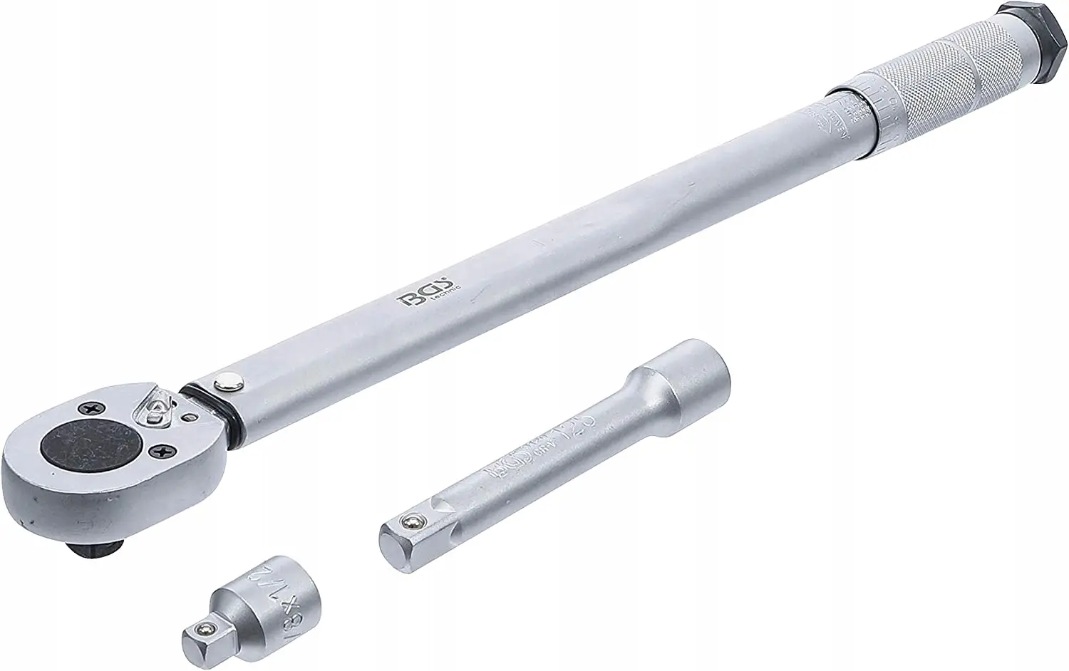 Momentový klíč BGS100957 je určen pro přesné utahování šroubů a matic v rozsahu 40 až 210 Nm. Díky čtyřhranému nástavci 12,5 mm (1/2") je kompatibilní s běžnými nástavci a příslušenstvím, což z něj činí vhodný nástroj pro práci v dílně, garáži i na stavbě.