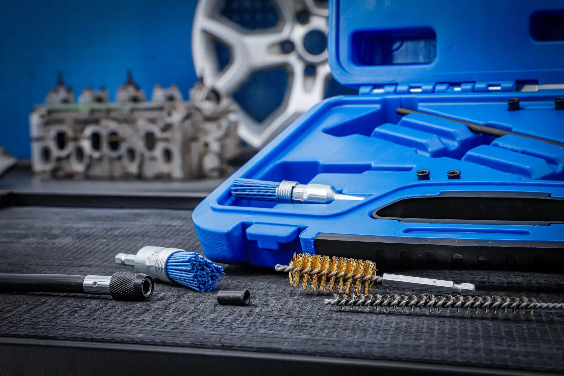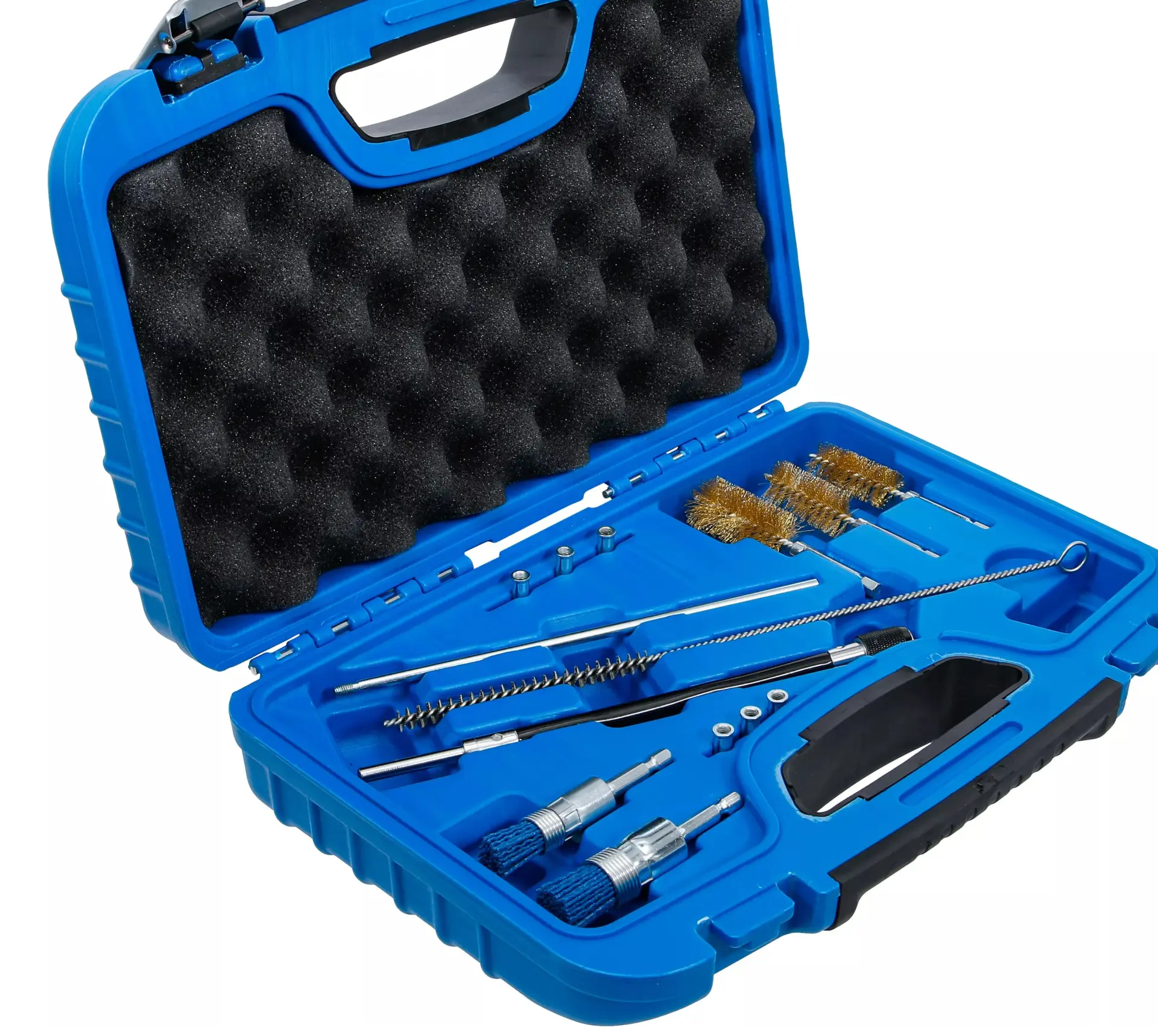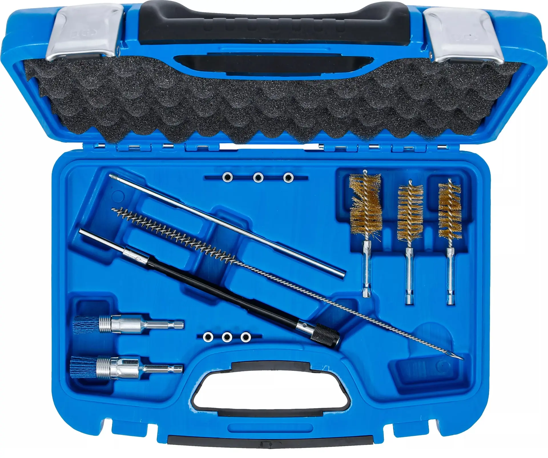 Sada nářadí BGS109324 umožňuje efektivní čištění šachet a sedel vstřikovačů, obsahuje různé kartáče a adaptéry pro přesné odstranění usazenin. Vhodné pro běžné typy motorů.