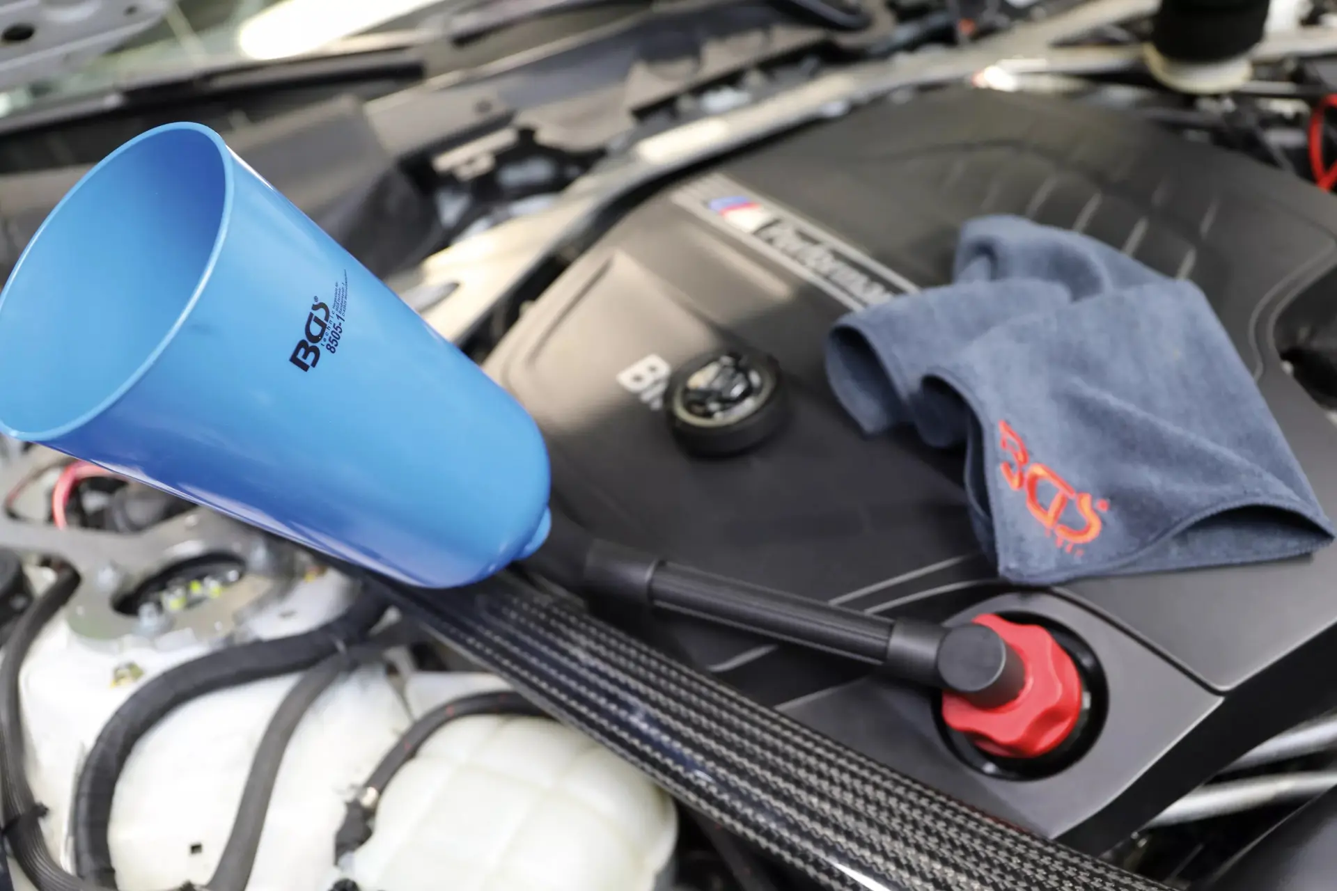 Plastová plnička oleje BGS technic se sadou adaptérů na plnění oleje