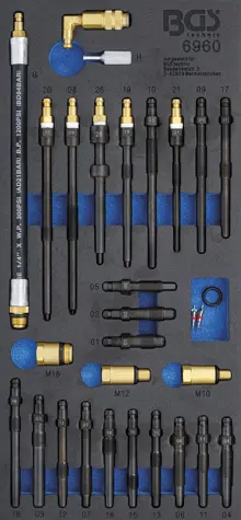 Nářaďový modul 1/3 - BGS106960 Adaptéry pro testery na zkoušku komprese a úniku tlaku (Sada 30 dílů) (BGS106960)