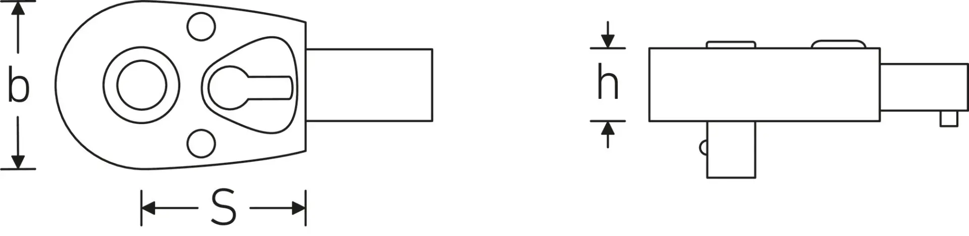 Čtyřhranný pohon (9 x 12 mm) umožňuje rychlé a snadné přizpůsobení ráčny různým aplikacím a situacím