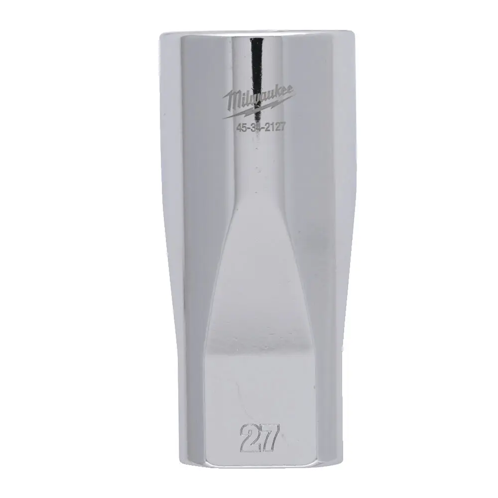 1/2˝ prodloužený nástrčný klíč s rozměrem 27 mm je určený pro použití s ráčnami a momentovými klíči s odpovídajícím čtyřhranem. Díky prodloužené konstrukci umožňuje snadný přístup k maticím a šroubům, které jsou umístěné hlouběji nebo v úzkých prostorech.