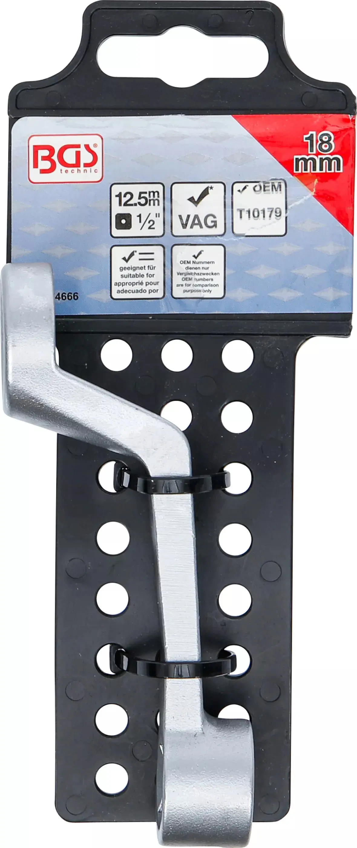 Zalomený očkový klíč pro seřízení odklonu kol umožňuje přesné nastavení geometrie náprav a snadnou manipulaci při servisu podvozku. Robustní konstrukce zajišťuje dlouhou životnost i při častém používání v dílenském prostředí.