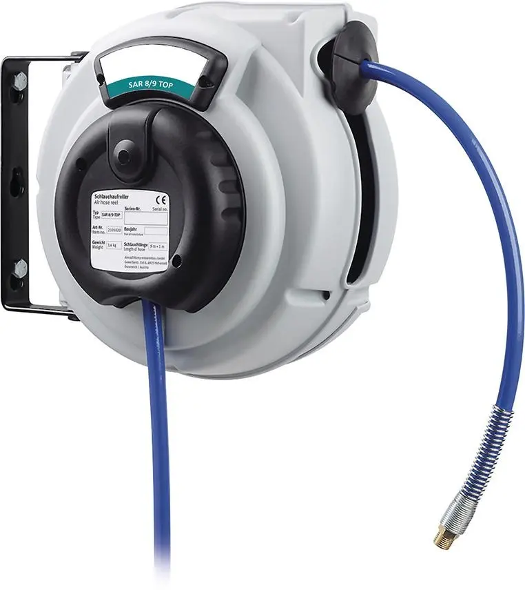 Navíjecí buben SAR 8/9 TOP nabízí 9 metrů hadice s automatickým navíjením, robustní konstrukcí a jednoduchou montáží na stěnu pro efektivní práci na zahradě.