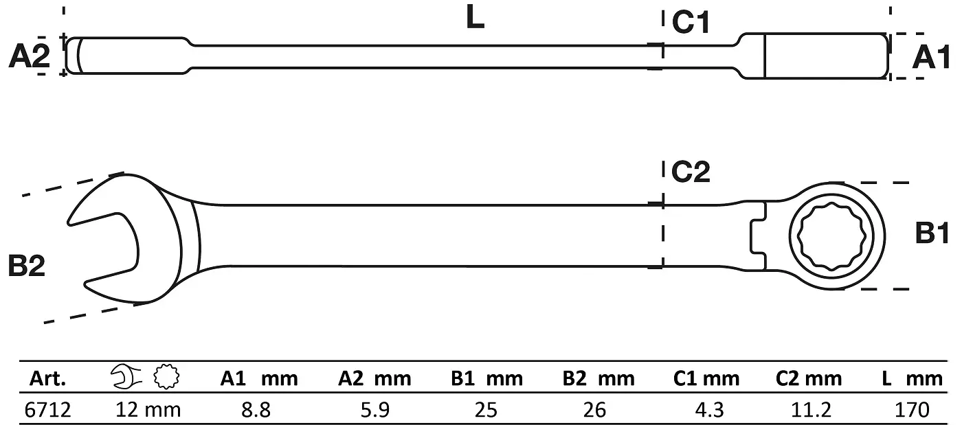 Očkoplochý klíč 12 mm s ráčnou BGS106712, kloubový (BGS106712)