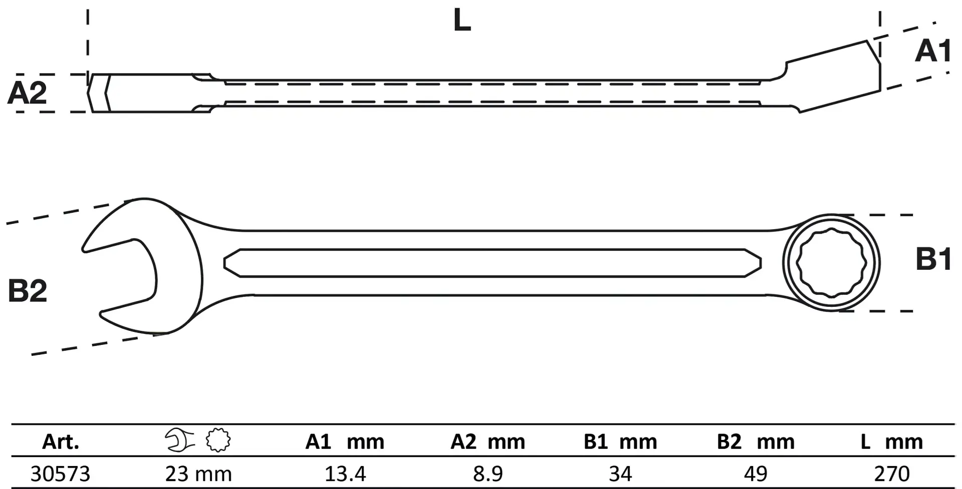 Očkoplochý klíč 23 mm BGS1030573, DIN 3113A, matný chrom (BGS1030573)