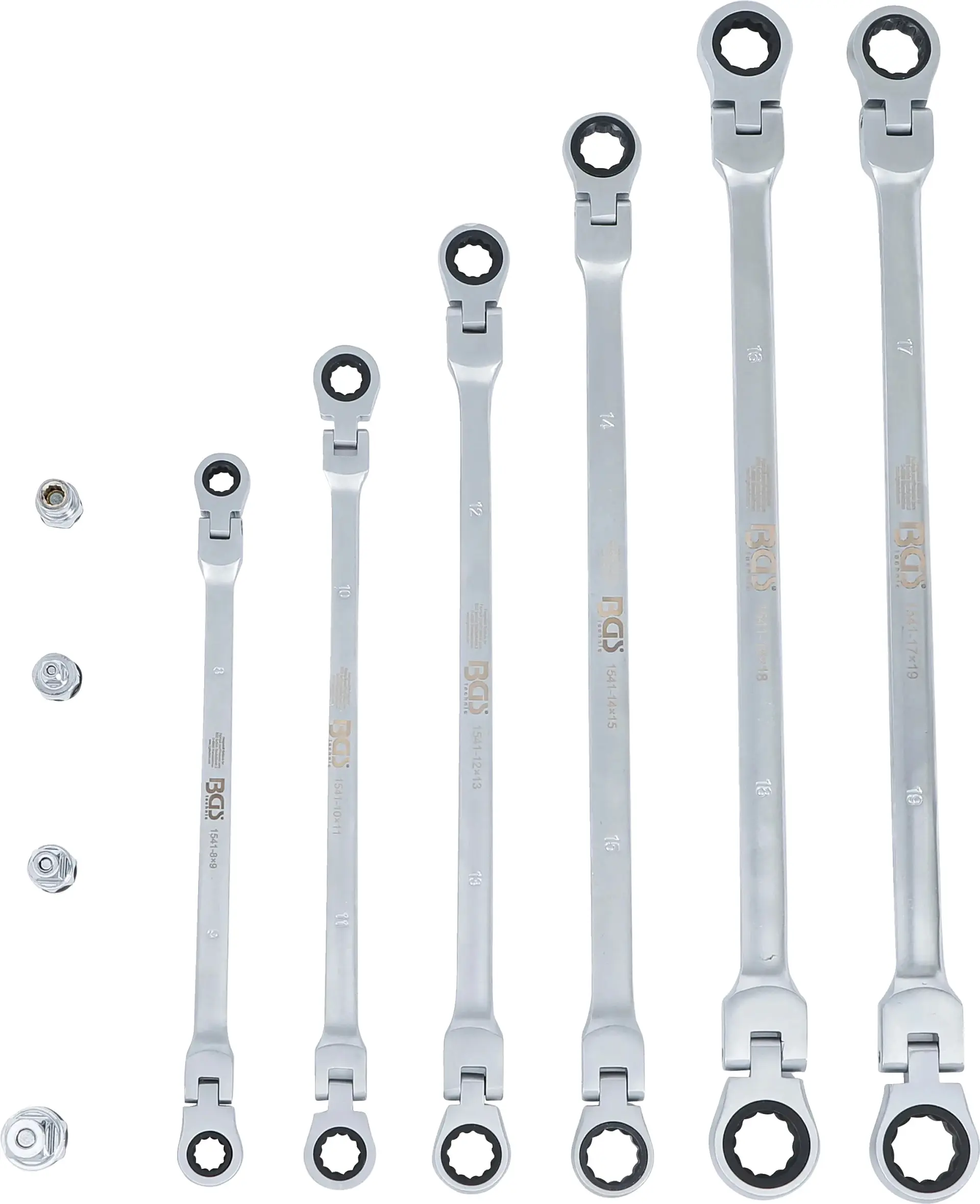 Očkové ráčnové klíče 8 ÷ 19 mm BGS101541, výkyvné, extra dlouhé. Sada 10 dílů (BGS101541)