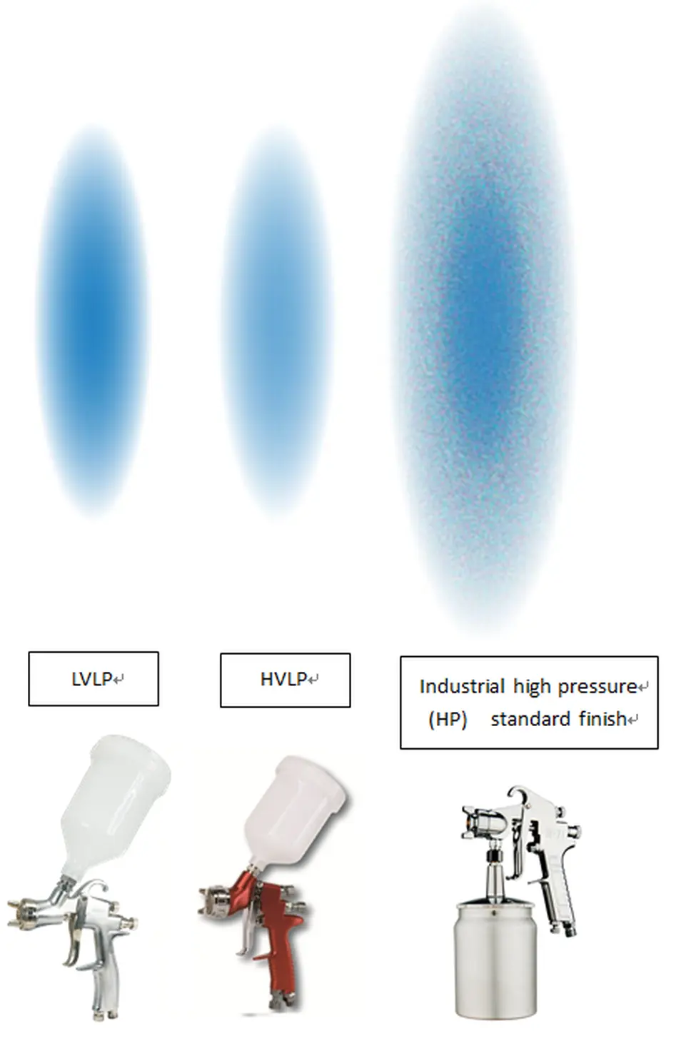 - nízký rozprašovací tlak redukuje množství odražené barvy