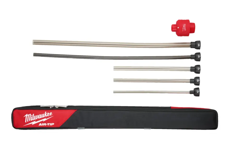 Příslušenství určené k vysvačům Milwaukee. Nástavec pro nasazení k trubici vysavače s výběrem z pěti prodložených ohebných trubic.