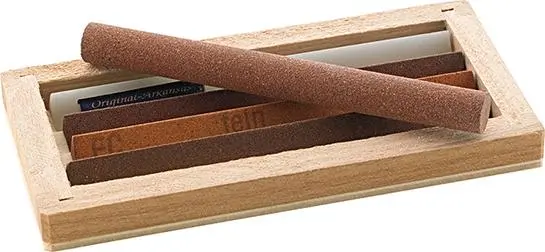Provedení: Sada nejčastěji používaných brousků (10 x 100 mm) jak na hrubý, tak i na jemný brus. Dodáváme v dřevěném boxu.