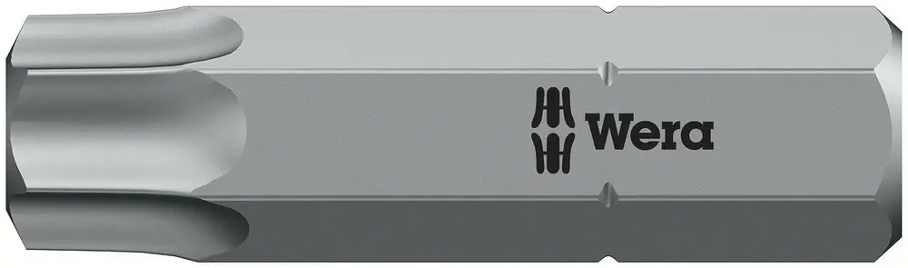 Vysoce kvalitní bity na šrouby s vnitřním profilem TORX®. Nepřípustnému uvolnění brání díra v bitu a čep ve šroubu TORX® BO. Bezpečnostní šroubové spoje. Houževnaté provedení, pro univerzální použití. Šestihran 1/4", vhodný pro držáky podle DIN ISO 1173-D 6,3.