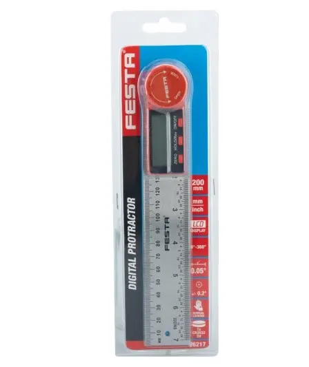 Digitální úhloměr s pravítkem 200 mm L26217 je praktický nástroj určený pro přesné měření úhlů i délek v dílně, na stavbě nebo při domácích úpravách. Kombinace digitálního úhloměru a pravítka umožňuje rychle a jednoduše zjistit hodnoty v rozsahu 0–360°, což ocení každý, kdo pracuje s materiály vyžadujícími přesné úhlové řezy.