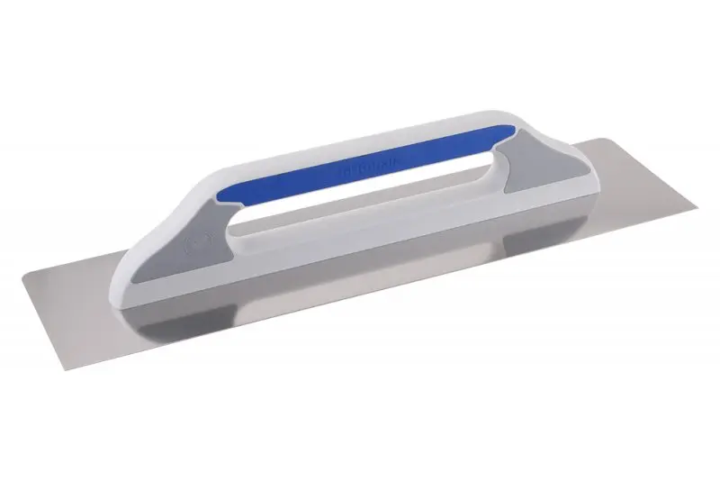 Hladítko z nerezové oceli o rozměrech 130 x 480 mm s oblými rohy je vhodné pro úpravu omítek a stěrek. Ergonomická rukojeť usnadňuje manipulaci při práci na větších plochách.