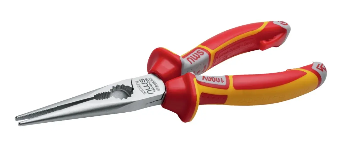Kleště telefonní rovné 205 mm VDE (NWS140-49-VDE-205) mají izolaci do 1000 V, úzké čelisti pro přesnou práci a ergonomickou rukojeť pro snadné držení. Vhodné pro elektrikářské práce v rozvaděčích i stísněných prostorech.