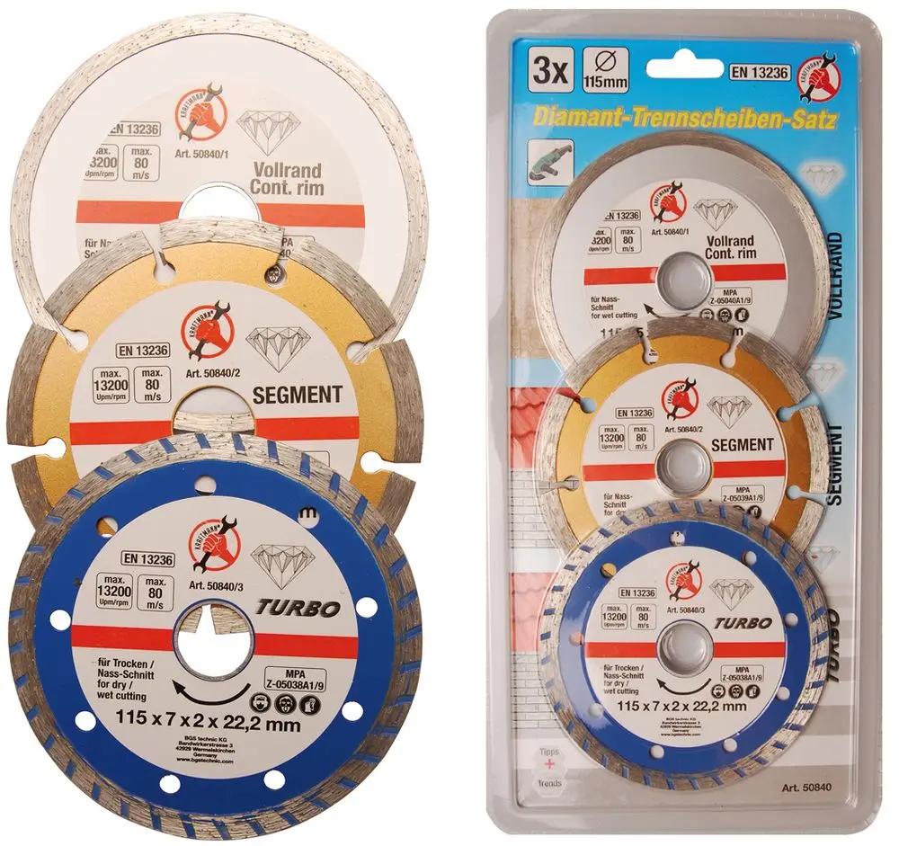 kotouče diamantové, průměr 115 x 22,2 mm, sada 3 k (BGS1050840)
