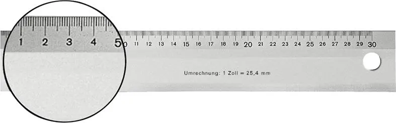 Stupnice je vyznačena jasně a přehledně, což usnadňuje odečítání hodnot při práci. Délka 300 mm poskytuje dostatečný rozsah pro běžné úkoly, ať už jde o kreslení čar, kontrolu rozměrů nebo práci s technickými výkresy.