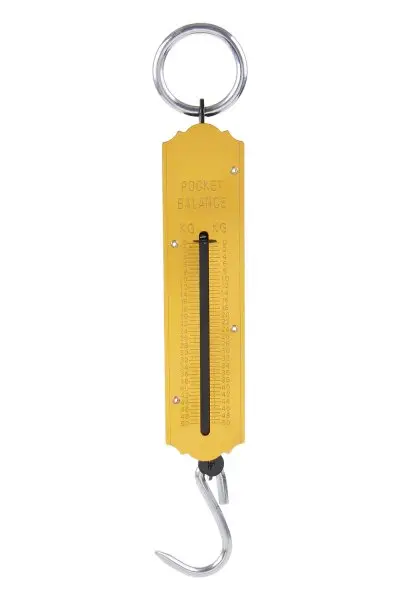 Zařízení je vybaveno robustním kovovým hákem pro zavěšení váženého předmětu a pevným okem pro uchycení mincíře. Stupnice je čitelná a umožňuje snadné odečítání hmotnosti v kilogramech. Mechanismus nevyžaduje napájení, což zajišťuje nezávislost na bateriích nebo elektrické síti.