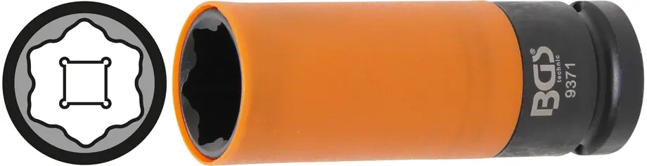 Ochranný návlek s rázovým nástrčným klíčem 21 mm je určený pro Hyundai i30, Tucson a Kia, s pohonem 12,5 mm (1/2") pro snadnou výměnu kol. Robustní konstrukce chrání disky před poškozením při práci s rázovým utahovákem.