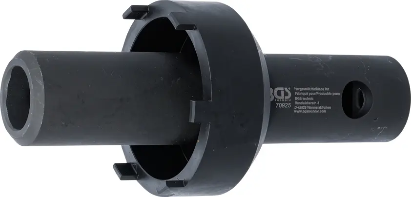 Nástrčný klíč 3/4" s vnějšími čepy o průměru 92 mm je určený pro montáž a demontáž matic zadní nápravy vozidel Mercedes Benz. Robustní konstrukce zajišťuje spolehlivé použití v dílenském prostředí.