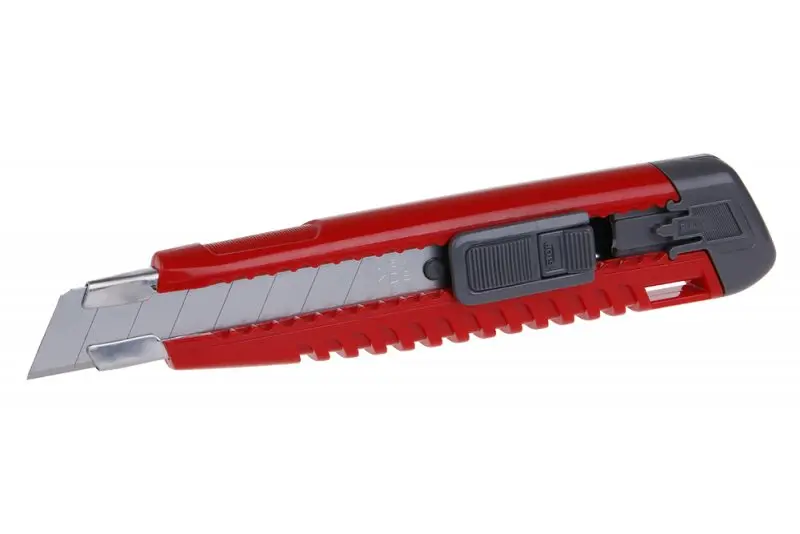 Nůž KDS/L-11/LC-405 v modrém provedení je určen pro široké spektrum řezacích prací v domácnosti, dílně i kanceláři. Je vybaven výsuvnou čepelí o šířce 18 mm, která umožňuje přesné a efektivní řezání různých materiálů, jako je papír, karton, fólie nebo tenčí plasty.
