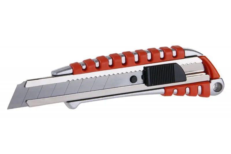 Konstrukce z kovu prodlužuje životnost nástroje a snižuje riziko poškození při pádu nebo intenzivním používání. Nůž je vhodný pro řezání papíru, kartonu, plastů i tenčích dřevěných materiálů. Výměna čepele je rychlá a zvládne ji každý bez potřeby speciálního nářadí.