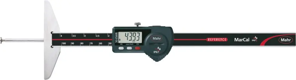 Digitální posuvný hloubkoměr MAHR 100/0,01 mm je vhodný pro přesné měření hloubky otvorů, drážek nebo vybrání v kovových i nekovových materiálech. Přístroj je dodáván v ochranném pouzdře, které usnadňuje jeho skladování a přepravu.