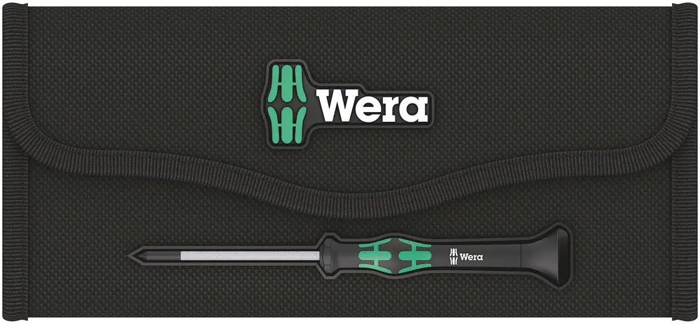 • Robustní skládací brašna pro 12 šroubováků Kraftform Micro se silným suchým zipem, poutkem na pásek a závěsným očkem, prázdná.