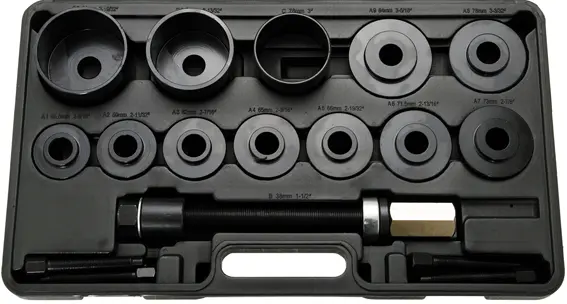 Tato sada obsahuje 25 dílů určených pro vylisování a nalisování ložisek nábojů kol. Je vhodná pro běžné údržbové práce v domácí dílně nebo garáži. Díky univerzálním rozměrům je možné ji použít na různé typy osobních vozidel.