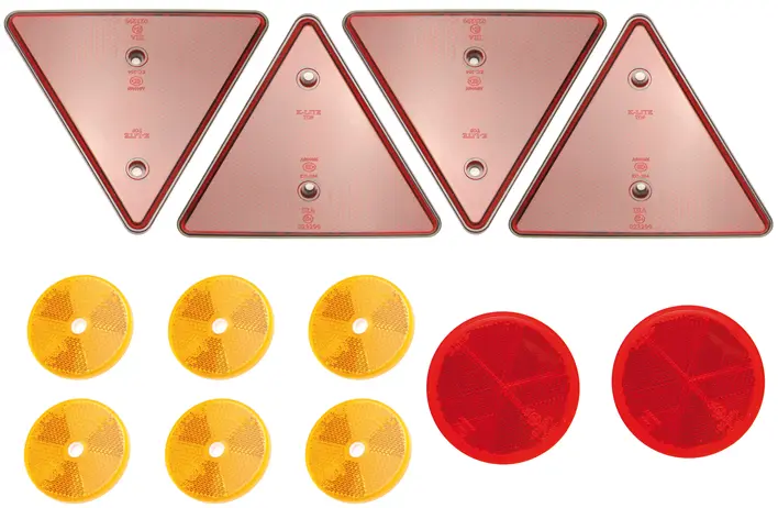 Každá odrazka je vyrobena z odolného plastu, který je navržen tak, aby odolal běžným povětrnostním vlivům. Povrch odrazek je opatřen speciální strukturou, která zajišťuje efektivní odraz světla z různých úhlů. To přispívá k lepší viditelnosti přívěsu pro ostatní účastníky silničního provozu.