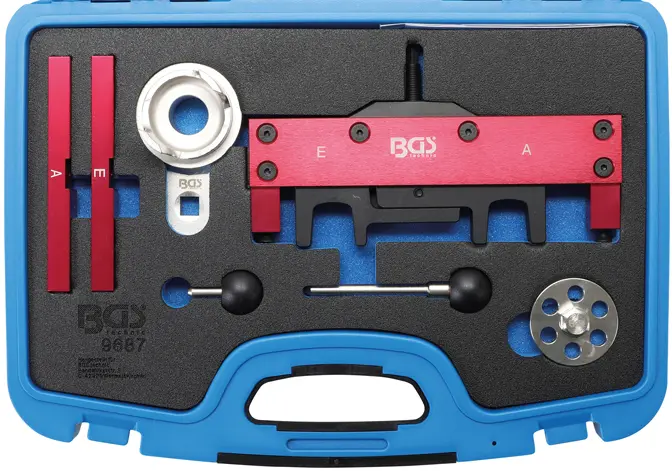 Součástí balení jsou přípravky pro aretaci vačkových hřídelí, přípravek pro nastavení klikového hřídele a další potřebné nástroje pro práci na rozvodech. Každý díl je vyroben z odolných materiálů, které zajišťují dlouhou životnost a přesnost při opakovaném použití.