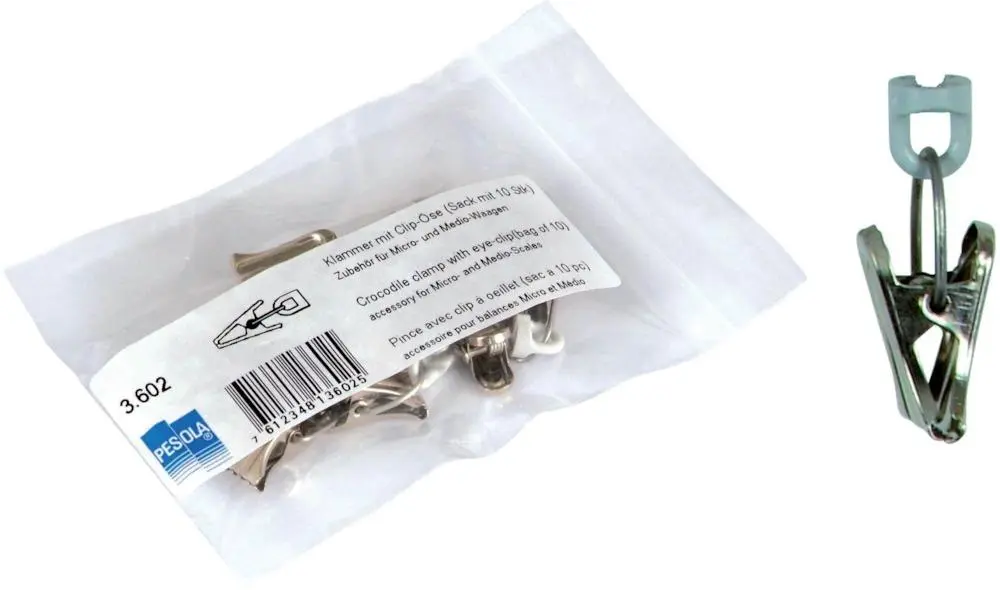 Svorka a hák pro Micro PESOLA (EDE48940070) představují příslušenství určené pro váhy řady Micro PESOLA. Tento set umožňuje snadné zavěšení a upevnění vážených předmětů, což oceníte při práci v laboratoři, školních projektech i při terénních měřeních.