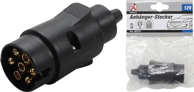 Produkt je vyroben z odolného plastu, který chrání vnitřní kontakty před vlhkostí a prachem. Konstrukce zástrčky umožňuje snadné připojení i odpojení, což oceníte při častém používání nebo výměně přívěsů.