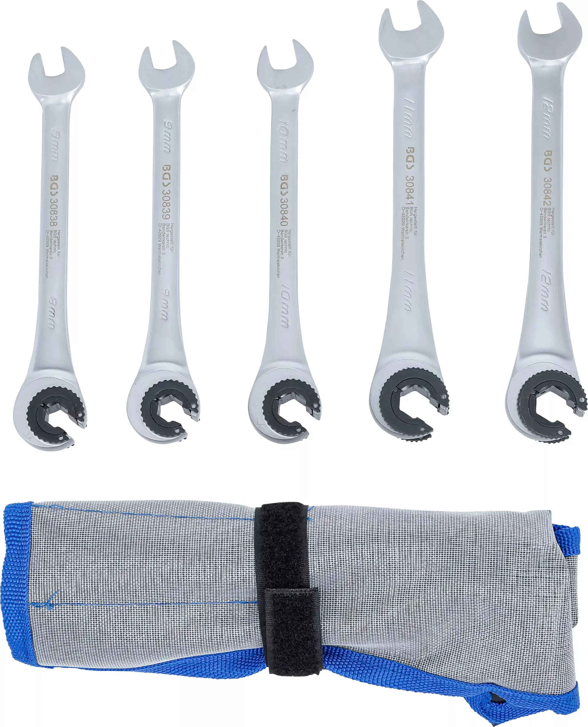 Otevřené očkoploché klíče 8 ÷ 12 mm s ráčnou BGS1030836. Sada 5 dílů v tašce (BGS1030836)