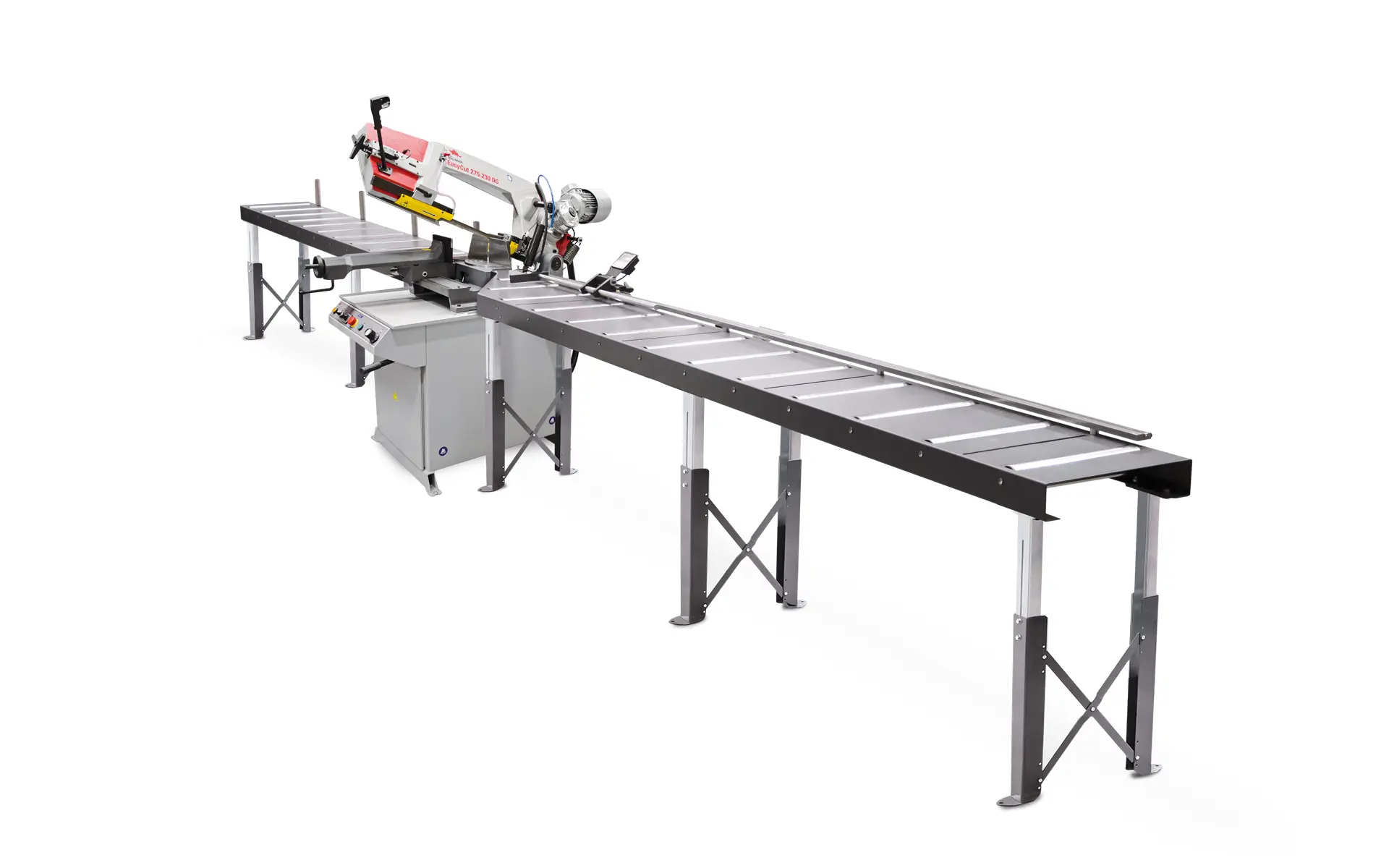 Přesné vedení pilového pásu, kloub ramene uložený v předepjatých kuželíkových ložiscích a synchronně běžící kartáč na odstraňování třísek, jsou dobrým předpokladem pro efektivní výkon stroje a dlouhou životnost pilového pásu