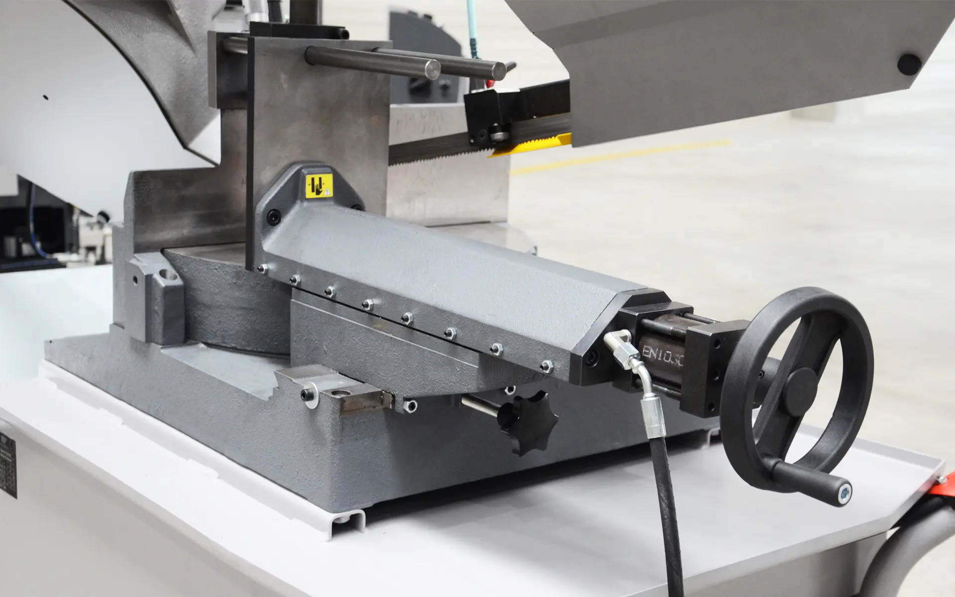 Litinové provedení ramene přispívá (v porovnání se svařenou konstrukcí) k lepšímu pohlcování vibrací při řezání. Přesné tvrdokovové vedení pilového pásu, kloub ramene uložený v předepjatých kuželíkových ložiscích a synchronně běžící kartáč na odstraňování třísek jsou předpokladem pro vynikající řezný výkon
