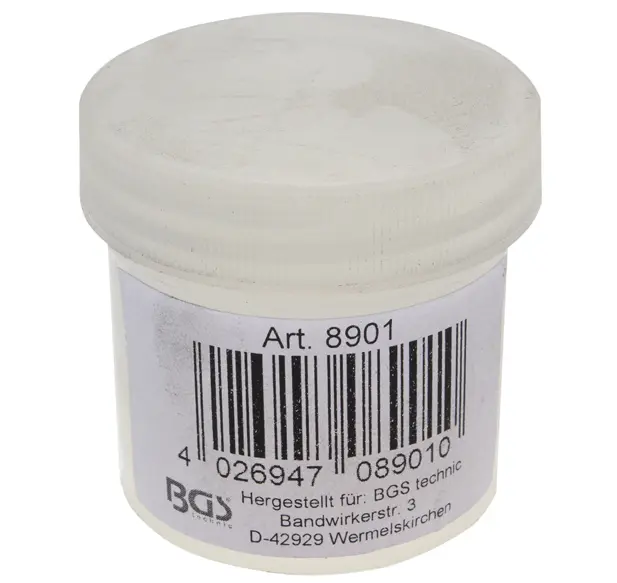 Montážní pasta BGS č.108900 (BGS108901) je určena pro použití při opravách pneumatik pomocí opravných knotů. Její složení usnadňuje zavádění knotů do poškozeného místa a zajišťuje hladký průběh opravy bez zbytečného tření nebo poškození materiálu pneumatiky.