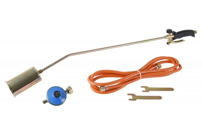Součástí balení je třímetrová hadice, která poskytuje dostatečnou flexibilitu při pohybu kolem pracovního prostoru. Hadice je navržena pro bezpečné vedení plynu a snadné připojení k lahvi s propan-butanem.