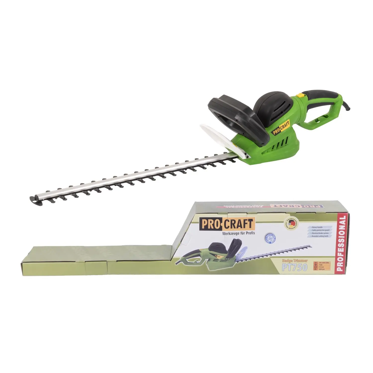 Plotové nůžky Procraft PT750 pro stříhání a tvarování keřů a živých plotů se sílou nezaschlých výhonů až 24 mm. Silný a tichý motor s příkonem 750 W a vysokých otáček až 1800 zaručuje dlouhou bezporuchovou práci. Rukojeť s protiskluzným, pogumovaným povrchem usnadní práci. 61 cm dlouhá lišta umožňuje úpravu většiny živých plotů. Balení karton.