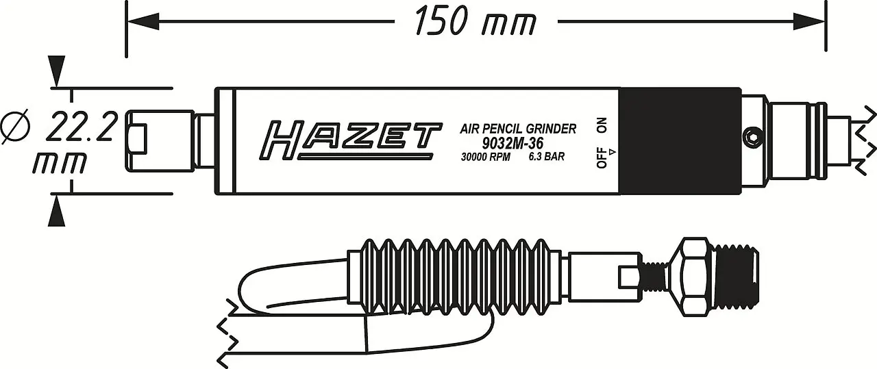 Pneumatická stopková minibruska HAZET - délka: 150 mm
