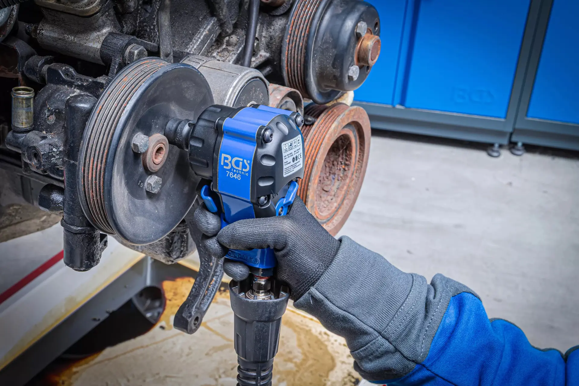 Rázový utahovák, který nabízí maximální utahovací moment 500 Nm a kompaktní rozměry pro práci v omezených prostorech. Ergonomická rukojeť zajišťuje pohodlné držení při dlouhodobém používání.