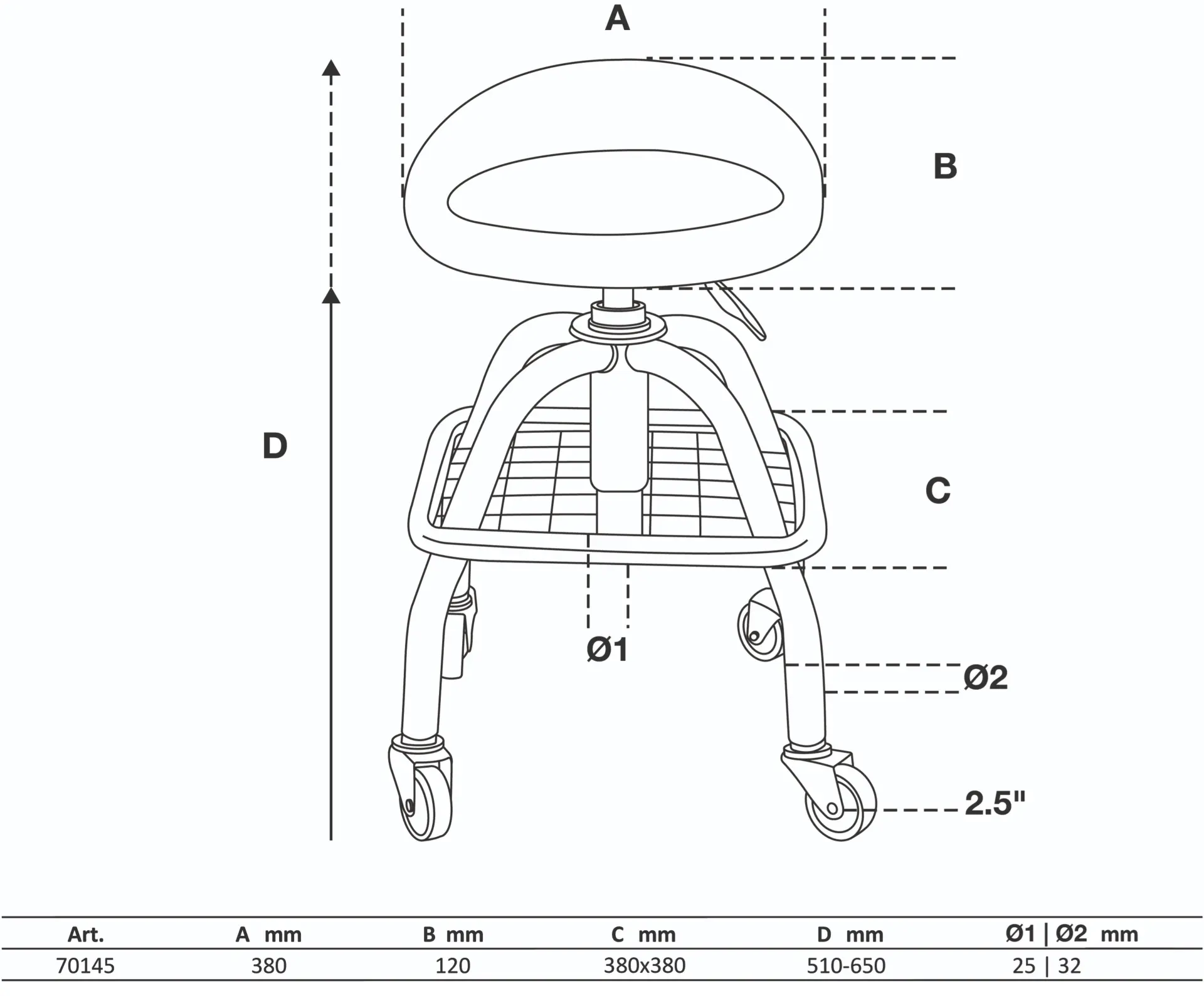 Pojízdná židle pro autoservisy BGS1070145 (4 kolečka, výškově stavitelná) (BGS1070145)