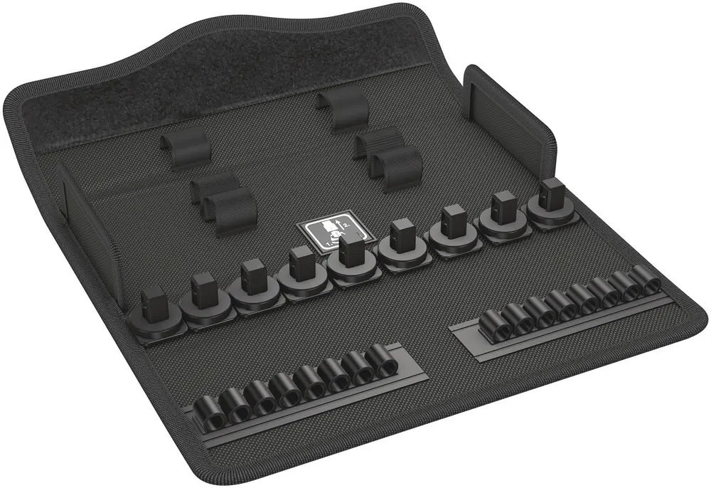 Robustní textilní box pro úsporu místa při skladování nářadí; ideální pro mobilní použití, protože použitý materiál je lehký a pevný; pro sady ráčen 8100 SB Zyklop Metal Switch, 3/8"; prázdný.