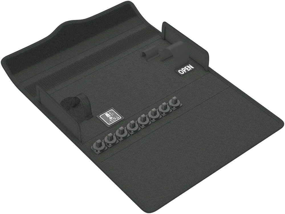 Robustní textilní pouzdro pro úsporu místa při skladování nářadí; ideální pro mobilní použití, protože použitý materiál je lehký a pevný; pro 10dílnou sadu nářadí Safe-Torque A 1 Set 1 a Safe-Torque A 1 Set Imperial 1; prázdné.