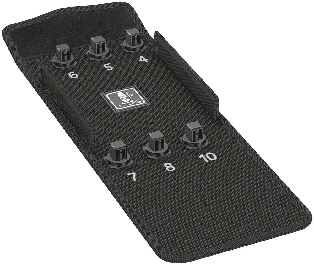 • Pevný uzávěr na suchý zip zabraňuje náhodnému otevření a ztrátě nástroje