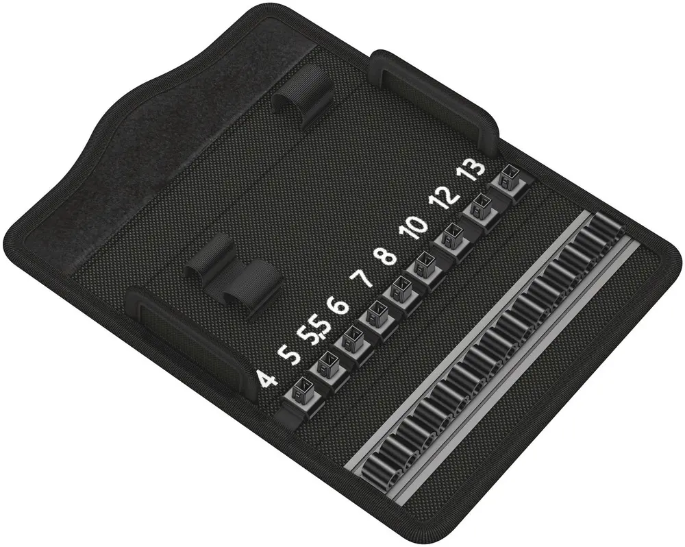 • Pevný uzávěr na suchý zip zabraňuje náhodnému otevření a ztrátě nástroje