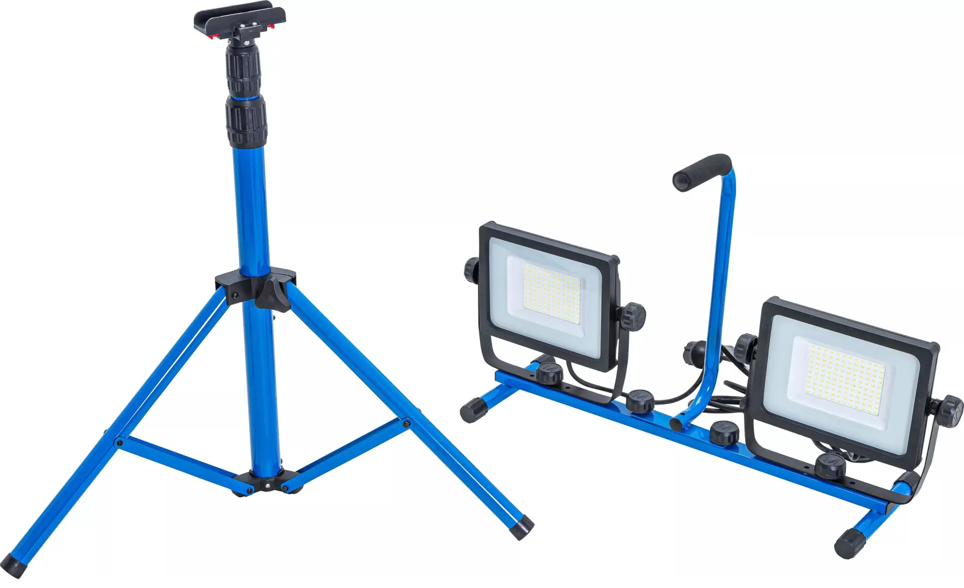Pracovní duo SMD LED svítilna se stativem nabízí dva světelné zdroje po 70 W, nastavitelnou výšku a stabilní konstrukci pro efektivní osvětlení pracovního prostoru.