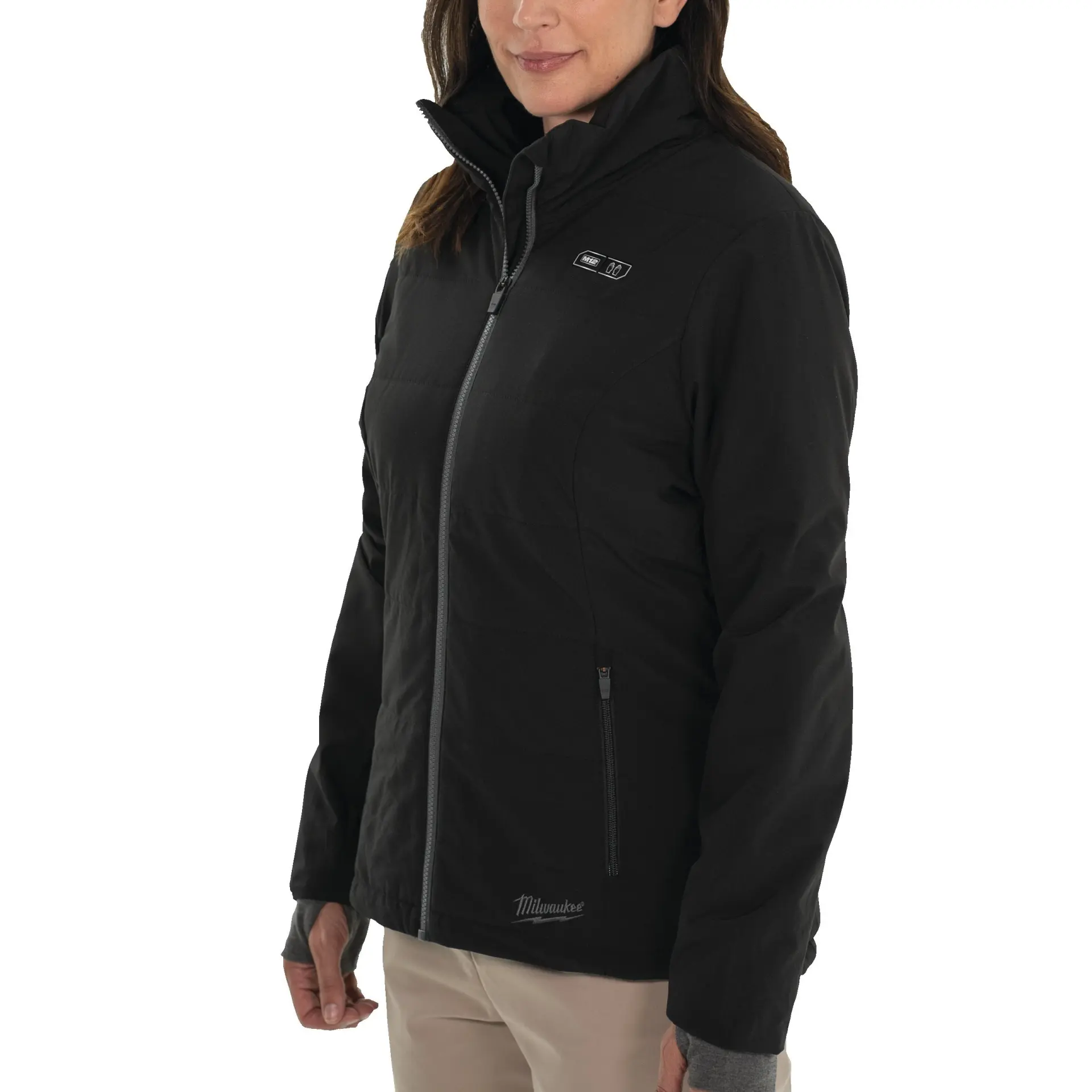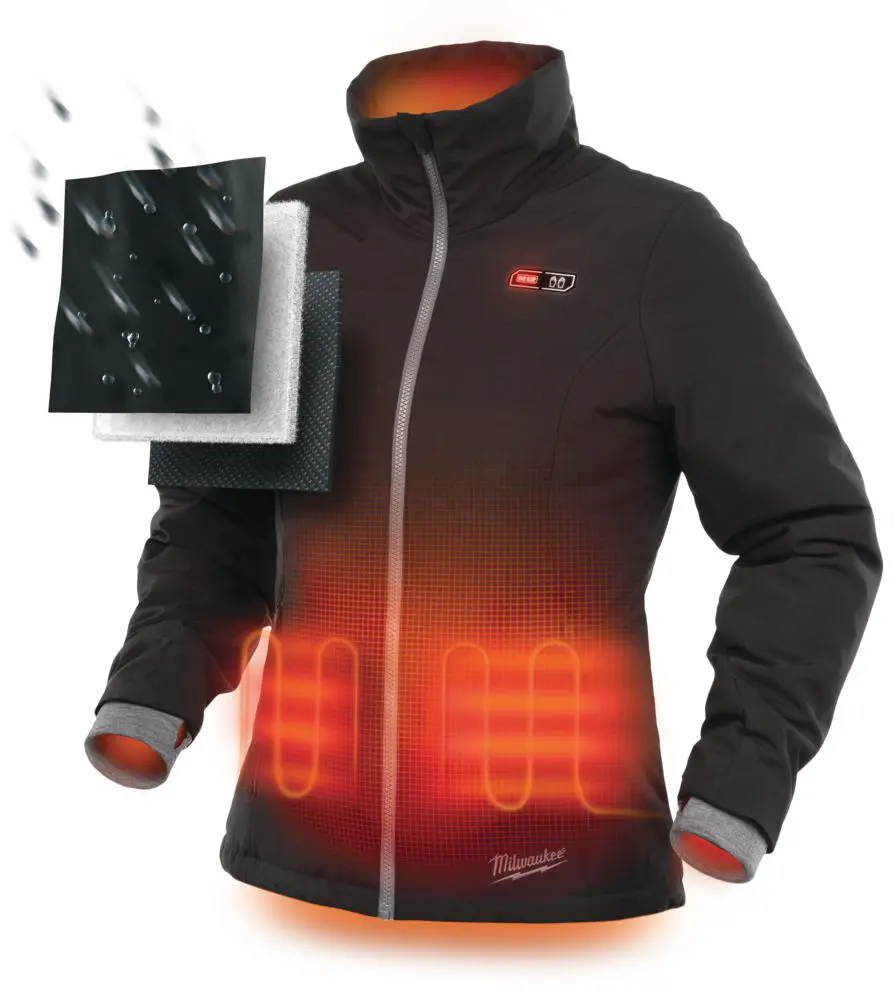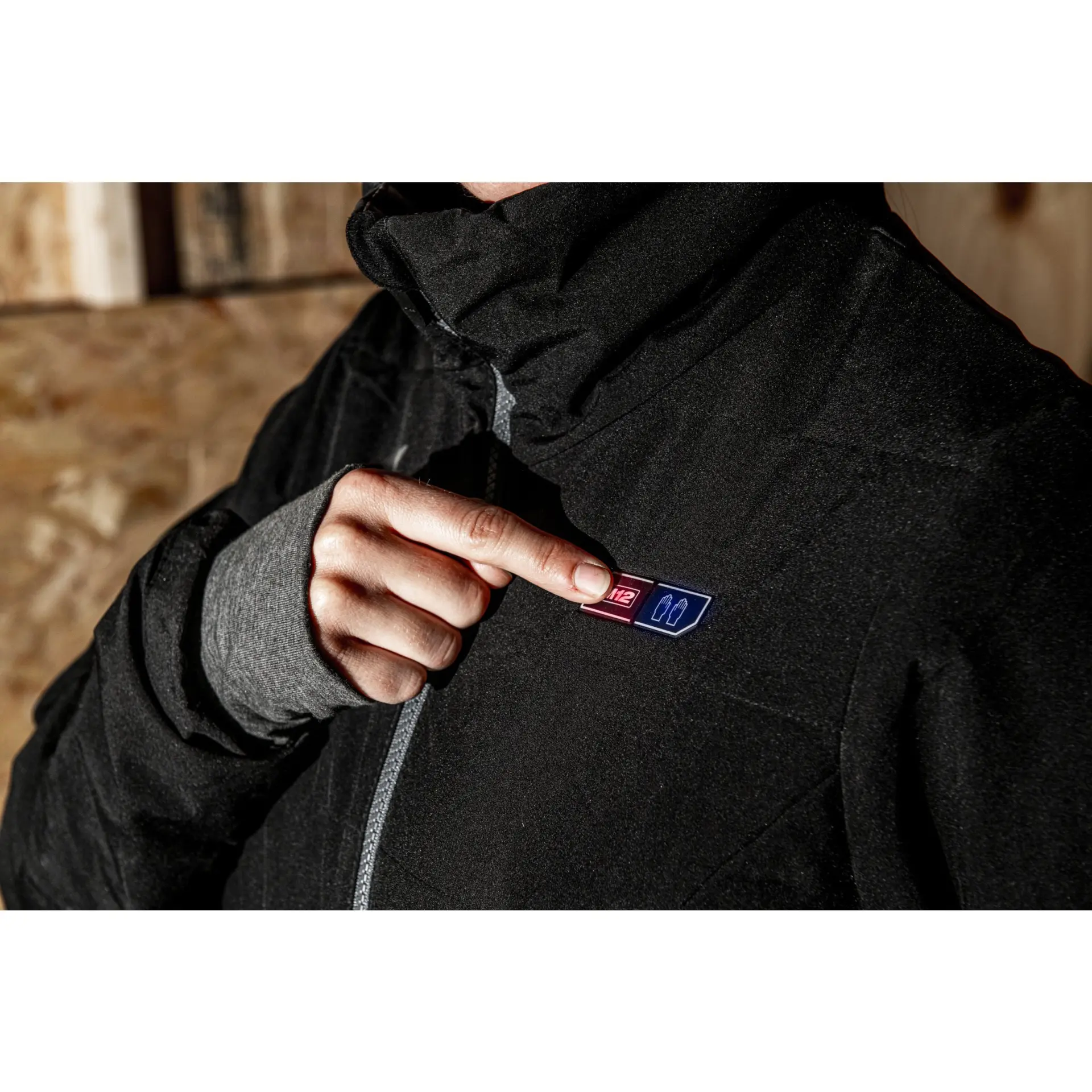Akumulátorem vyhřívaná bunda Milwaukee M12 HJLadies2, velikost XXL, dámská, v černé barvě. Doba provozu 8 hodin (12 V / 2 Ah), 3 úrovně tepla, všité topné zóny, kapsa na akumulátor, termo fleecová podšívka, funguje se všemi akumulátory M12. Součástí