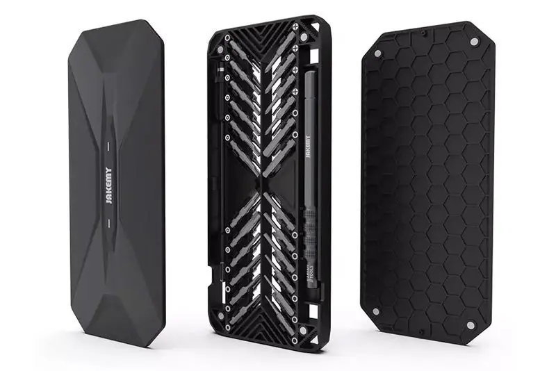 Sada je uložena v krabičce s oboustrannými víčky z vysoce odolného plastu v kartonovém obalu, jednotlivé bity nemohou samovolně vypadnout