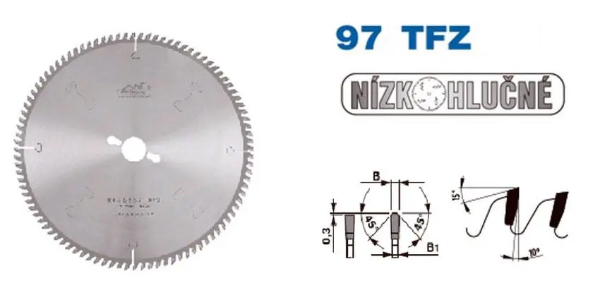 Pilový kotouč typ 22 5397 TFZ Speciálně konstruovanékotouče pro řezání oboustranně polaminovaných dřevotřískovýchdesek. Vysoká životnost břitových destiček.